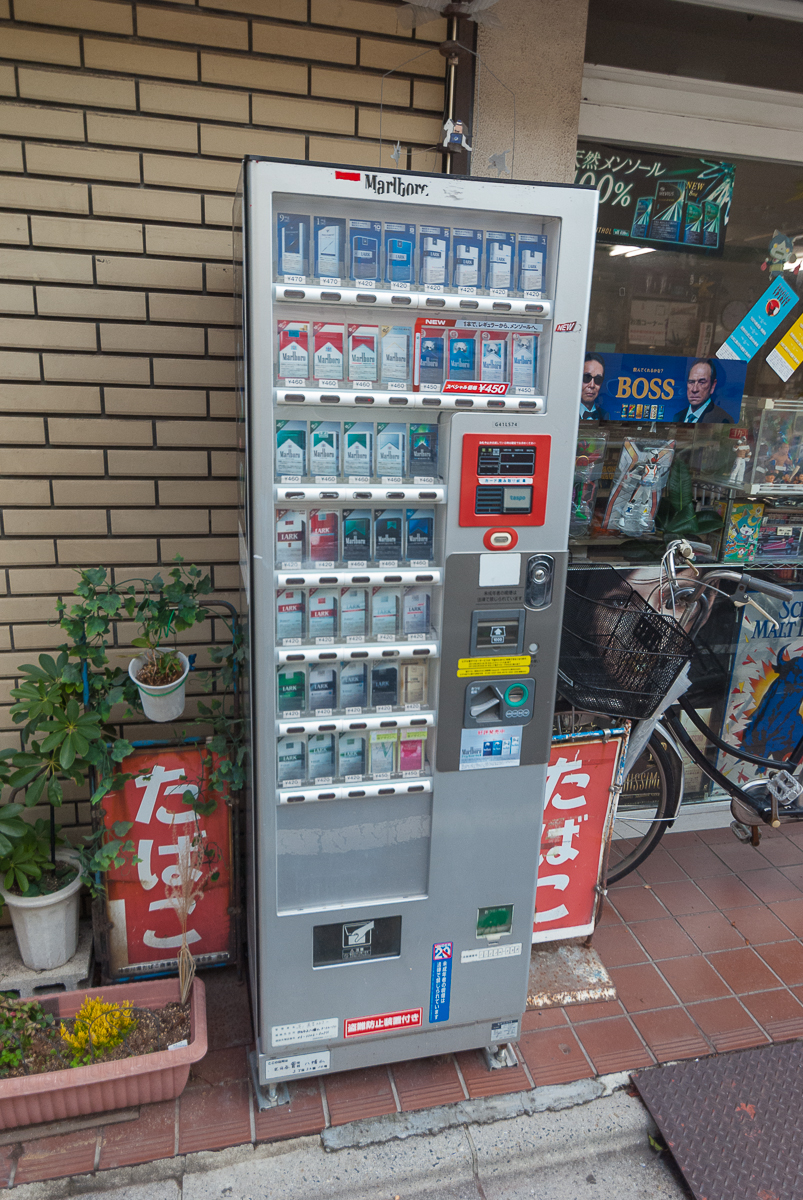 Les distributeurs de cigarettes ont survécu au Japon, mais ont été réduits de près de 50% durant la dernière décennie, l’archipel ne faisant pas exception à la croisade de la nouvelle religion anti-tabac faisant rage à travers le monde. En 2011, on estimait le nombre de machines à environ 327500. En dehors des konbini et autres marchands de tabac, ces automates sont une bonne alternative surtout lorsqu’ils se trouvent sur le trajet quotidien.