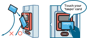 Néanmoins, en raison des lois japonaises de protection des mineurs, il faut disposer d’une carte Taspo (タスポ) pour pouvoir se servir de ces machines, qui n’est délivrée qu’aux résidents japonais de plus de 20 ans. Il existe aussi un système similaire pour les distributeurs automatiques proposant des boissons alcoolisées.