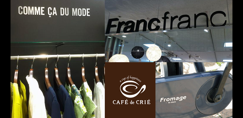 Parmi les innombrables et amusants exemples sur le sol nippon, on citera les marques ‘francfranc’ (fournitures de maison), ‘comme ça du mode’ (prêt-à-porter), ‘Café de Crié’ (Coffeeshop) ou encore ‘Fromage’ (Vélo).
