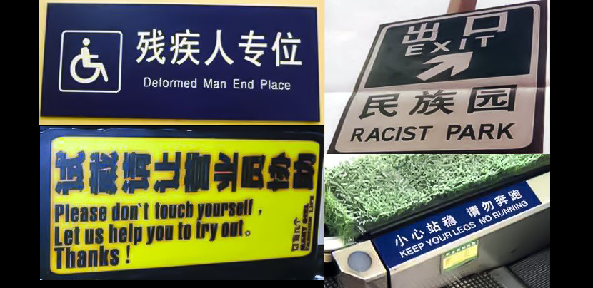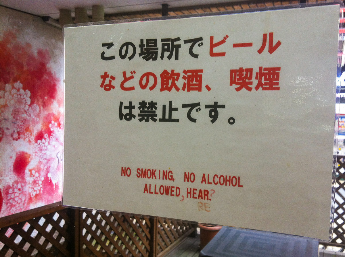 Un des traits typiques du Japon -et de l’Asie- est l’utilisation fantaisiste des langues étrangères dans la publicité, la mode ou les informations touristiques destinées aux étrangers.