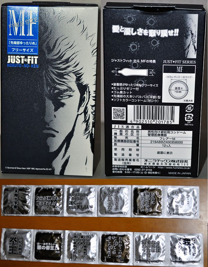 C’est assez coquasse lorsque l’on songe à tout ce que représente le personnage et à ses aptitudes particulières, et l’on peut se poser la question de savoir si ce produit déclenche des implosions, ou s’il faut crier ‘atatatatatata‘ lors de l’utilisation des préservatifs… 😉