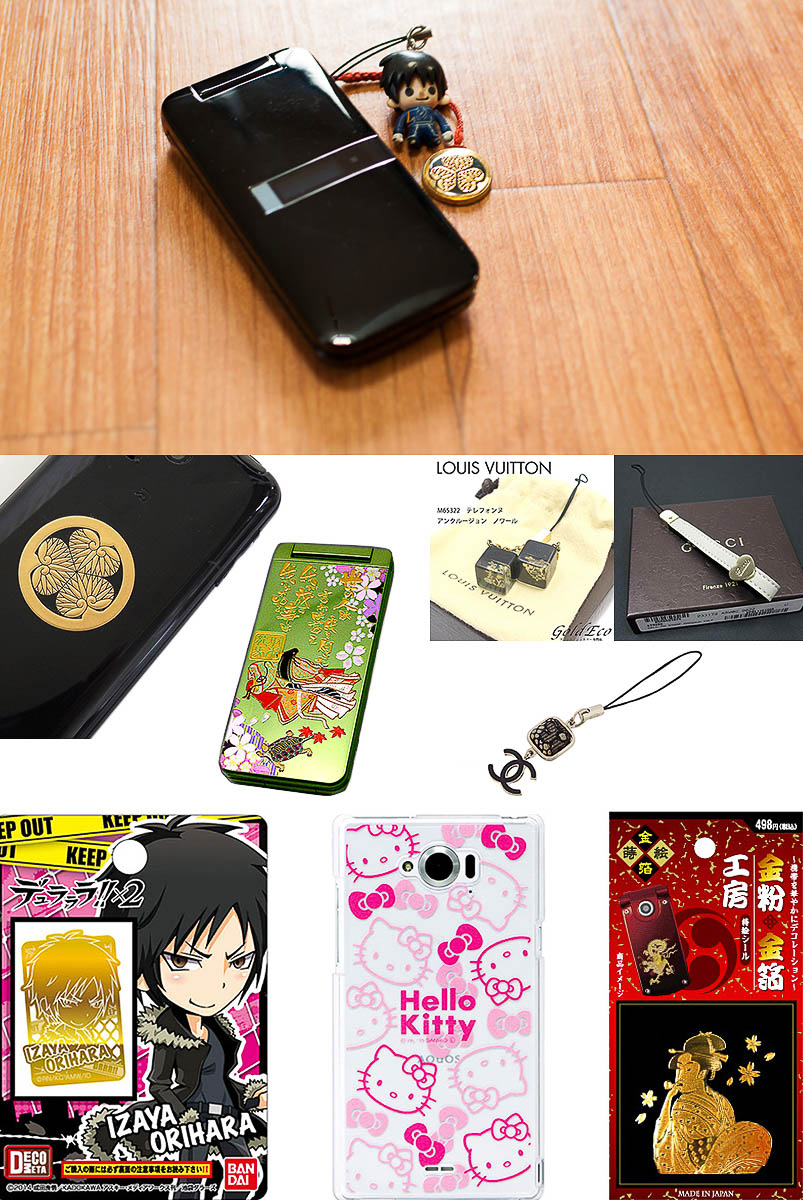 On trouve des stickers, coques personnalisées, straps et pendants à ficher dans la prise des écouteurs, du konbini au magasin d’électronique en passant par les department stores. Il est probable que cet engouement des japonais pour les pendants et autres objets attachés aux téléphones, clés, sacs, etc, provienne de l’époque Edo (江戸時代) ou il était coutume de pendre des objets à ses vêtements à l’aide d’un netsuke (根付), petit objet sculpté servant d’attache.