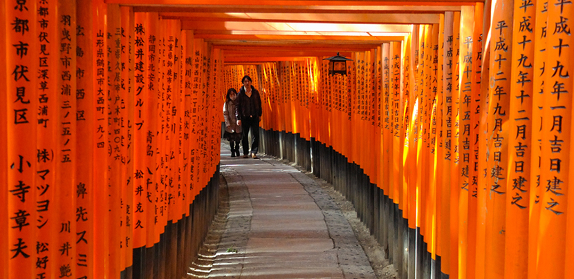 Fushimi-Inari-Taisha est sans doute un des sites les plus expressifs de Kyōto et un des sanctuaires les plus importants de la ville. Ensemble de sanctuaires et de torii (鳥居) -portiques- disséminés sur l’ensemble d’une montagne du Sud-Ouest de Kyōto, c’est un des sites touristiques les plus populaires de Kyōto, et il offre un beau panorama sur la ville depuis son sommet.