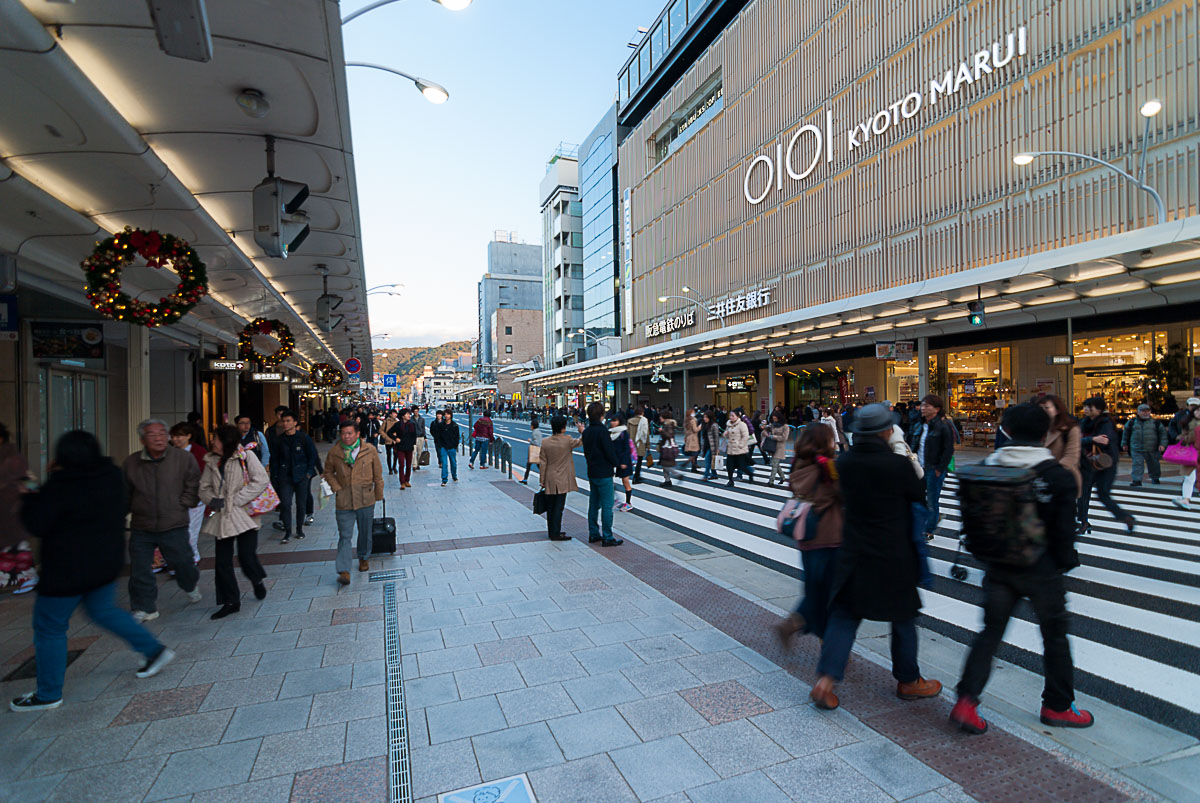 La ville de Kyoto est divisée en 11 arrondissements (区, ku) agissant comme des municipalités à l’inverse de Tōkyō : Fushimi-ku (伏見区), Higashiyama-ku (東山区), Kamigyō-ku (上京区), Kita-ku (北区), Minami-ku (南区), Nakagyō-ku (中京区), Nishikyō-ku (西京区), Sakyō-ku (左京区), Shimogyō-ku (下京区), Ukyō-ku (右京区) et Yamashina-ku (山科区). Les principales zones d’activités commerciales se situent au Centre et au Sud de l’agglomération, tandis que les zones du Nord et d’Arashiyama (嵐山) à l’Ouest, étant plus résidentielles et à moins forte densité sont plus verdoyantes.