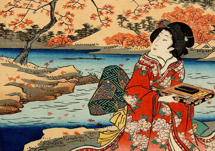 La tradition du momiji remonte à l’époque Heian (平安時代), entre 794-1195, et fut longtemps l’apanage de l’aristocratie japonaise. Ce n’est qu’à l’époque Edo (江戸時代), entre 1603-1868, qu’elle fut également popularisée parmi les gens du peuple. Son inspiration à fortement influencé la majorité des métiers des arts, et l’on retrouve même à notre époque encore de nombreuses représentations du koyo dans divers objets d’art ou du quotidien, tels que les kimono (着物), les estampes et peintures, la poterie, les arts culinaires et les jardins traditionnels par exemple. Si l’on considère cet évènement sous un angle culturel et religieux, cette contemplation comprend à la fois un aspect relatif à la spiritualité bouddhique de par son caractère éphémère tout comme la vie, et d’autre part aux croyances shintō (神道) relatives à l’animisme, les divinités résidant dans la nature et se manifestant ainsi aux hommes.