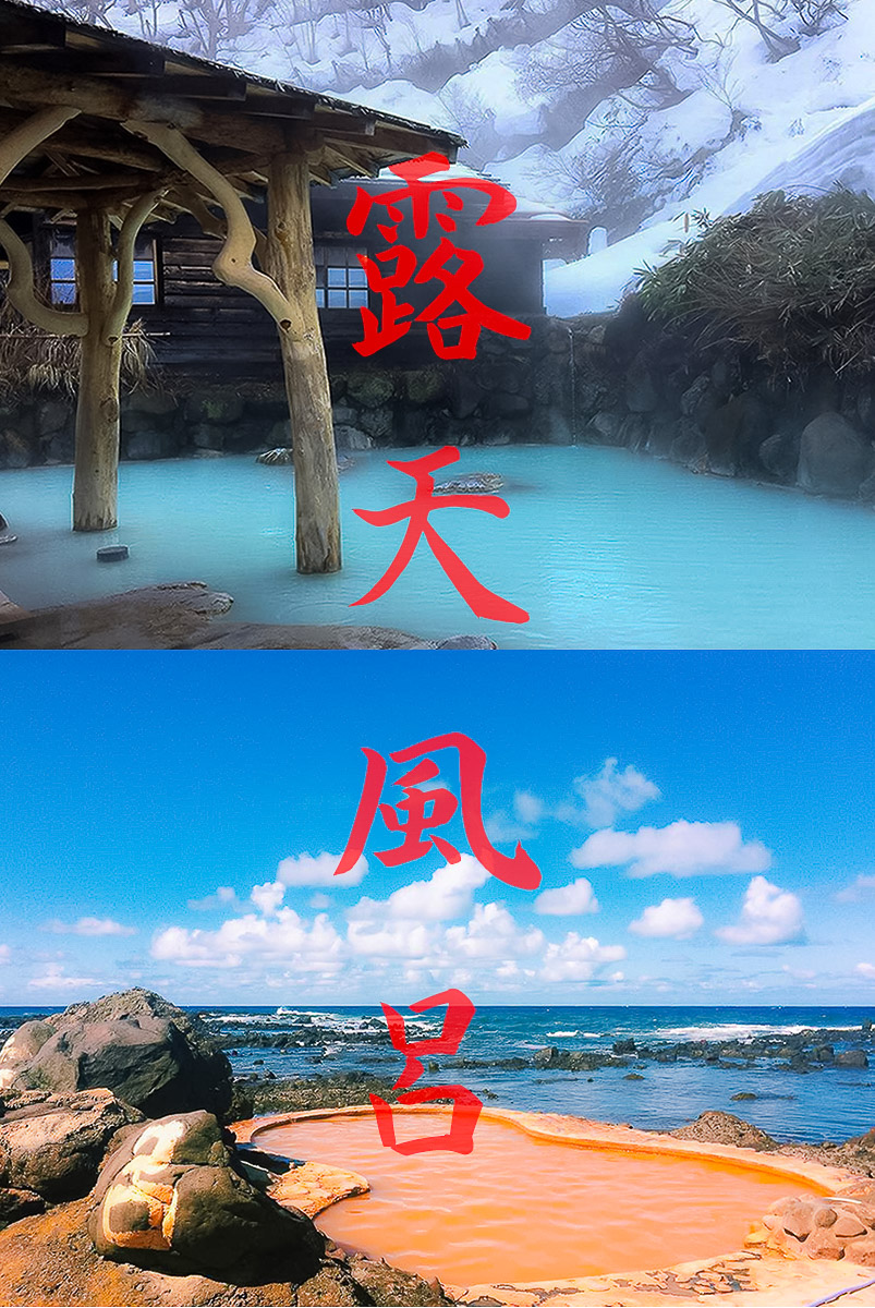 notenburo (野天風呂) – similaire au rotenburo, mais plus isolé et naturel, sans bâtiments autour.